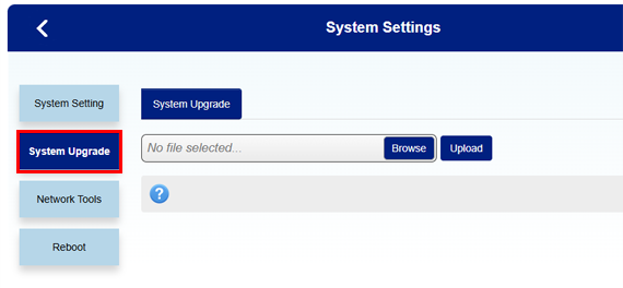 گام ششم: پس از ورود به صفحه System Upgrade با کلیک بروی دکمه Browse از محل ذخیره سازی فایل فریمور دانلود شده (برای دانلود بر روی دکمه دانلود فریور در بالای صفحه کلیک کنید) آن را انتخاب نموده.