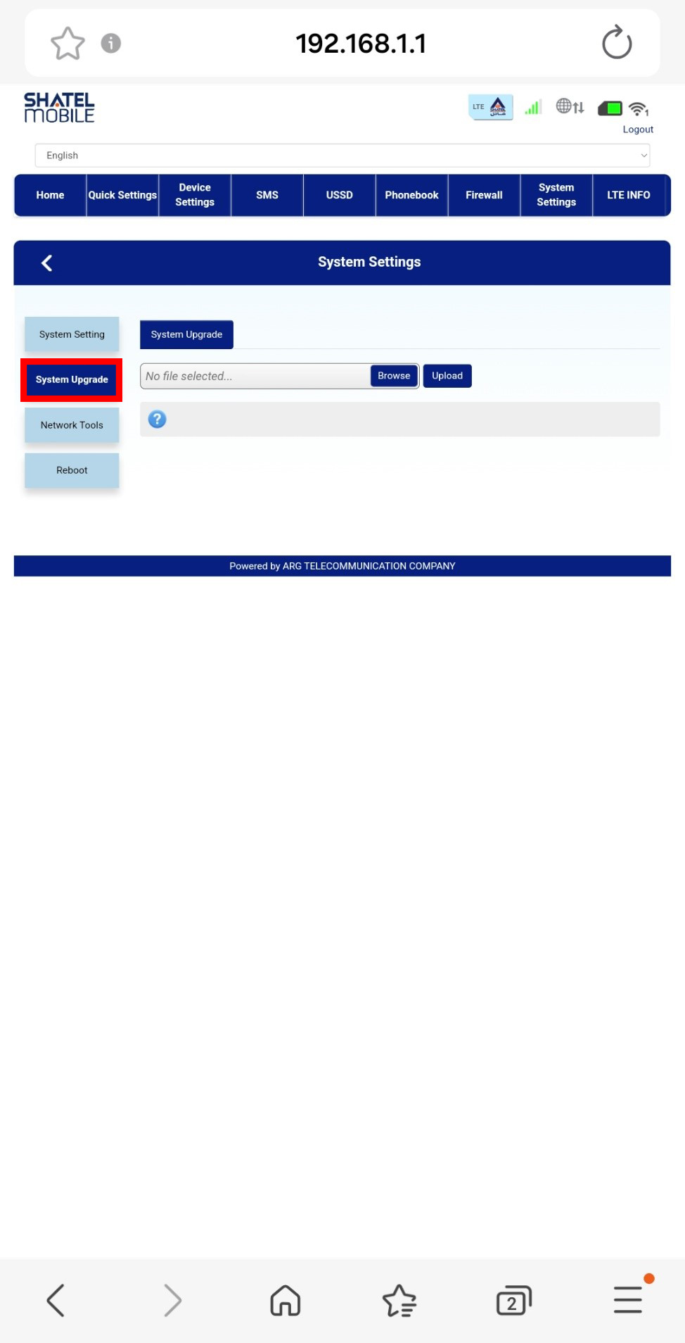 گام هفتم: پس از ورود به صفحه System Upgrade با کلیک بروی دکمه Browse از محل ذخیره سازی فایل فریمور (از قسمت بالای همین صفحه فایل فریمور را دانلود کنید) را انتخاب نموده.
