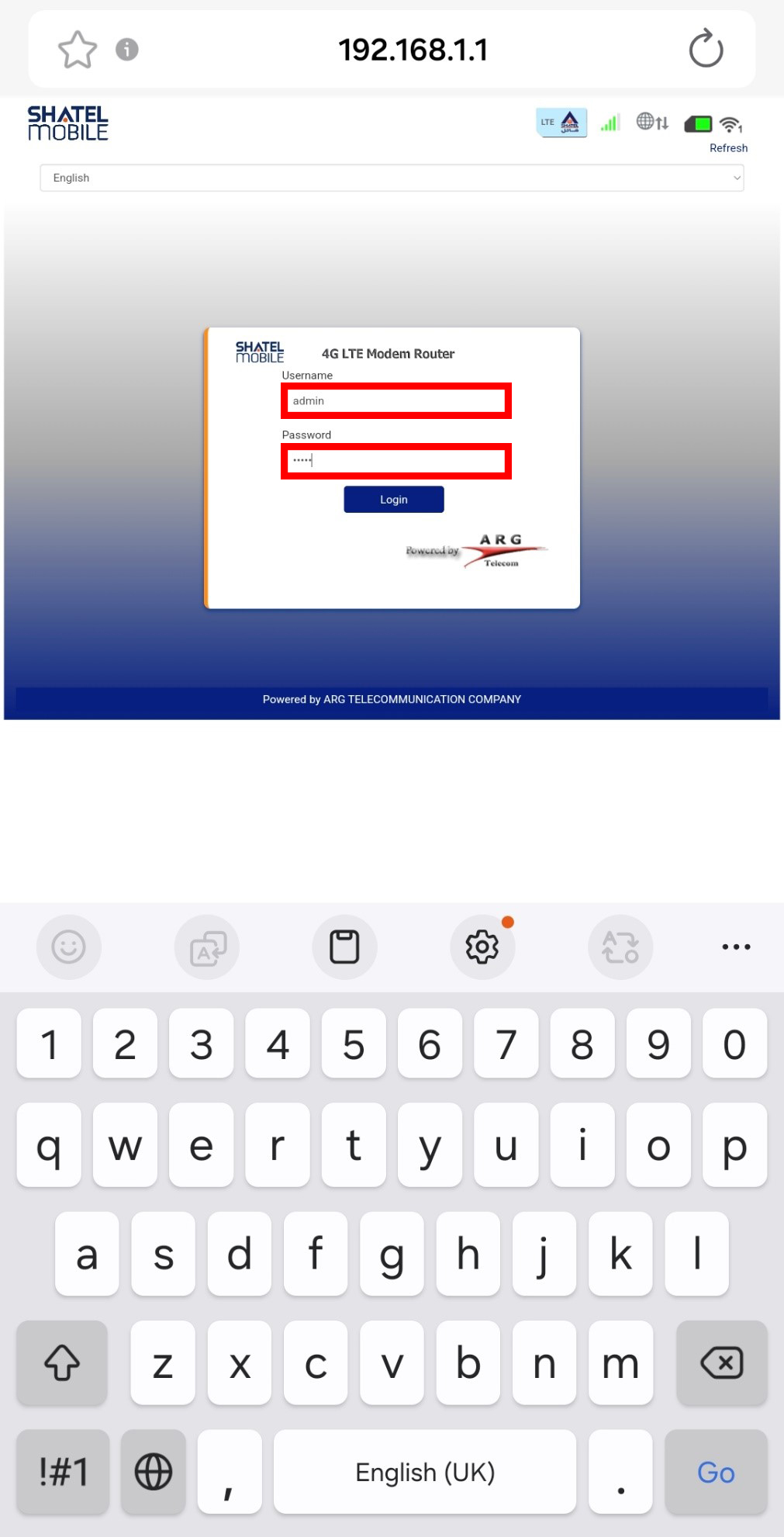گام دوم: از طریق مرورگر گوشی آدرس 192.168.1.1 را باز کرده و وارد صفحه کنسول مودم شوید. (به یاد داشته باشید که در همه مراحل VPN گوشی و نرم افزارهای