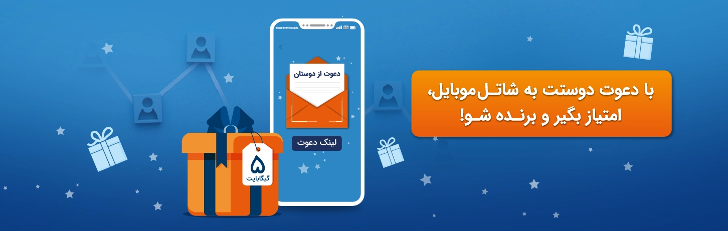 با دعوت از دوستانتان به شاتلموبایل به ازای هر دعوت، بسته اینترنت ۵ گیگابایت از شاتل موبایل هدیه بگیرید. همچنین با این دعوت میتوانید به صورت ویژه مجموع امتیازات دریافتی خود را دو برابر کرده و شانستان را برای برنده شدن در قرعه کشی آیفون ۱۷ افزایش دهید.